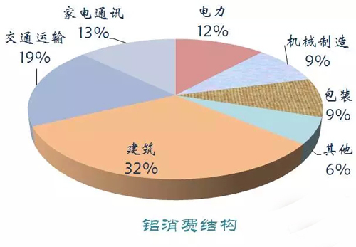 鋁主要應(yīng)用于建筑、交通運輸、家電通訊、電力、包裝和機械制造等領(lǐng)域。2014年我國鋁土礦儲量3250萬噸,產(chǎn)量2330萬噸,原鋁消費量2406萬噸。