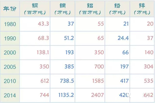 銅是被廣泛應(yīng)用在電力、家電、機械、建筑、交通、電子通訊等領(lǐng)域。2014年中國銅儲量3000萬噸,產(chǎn)量162萬噸,消費1135萬噸。